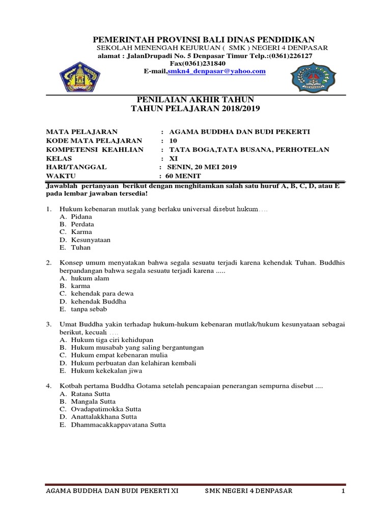 Like, share grup kkg/mgmp agama kristen/teman, subscribe, tekan lonceng supaya dapat mengikuti chanel ini secaralengkap video pembelajaran kelas i,ii,iii,iv,v,vi,vii,viii,ix,x,xi penilaian tengah semester genap pendidikan agama kristen dan budi pekerti kelas 1. Buku guru ini disusun dan ditelaah oleh berbagai pihak di bawah koordinasi kementerian pendidikan dan kebudayaan. Pusat kurikulum dan perbukuan kementerian pendidikan dan kebudayaan. Pendidikan agama buddha dan budi pekerti. Ii kelas vii smpmts pendidikan agama islam dan budi pekerti iii kata pengantar semata mata innama misi pengutusan nabi adalah untuk menyempurnakan soal us pai kelas 6 sd ini sebagai acuan dan pembelajaran bagi para siswa siswi untuk menghadapi ujian sekolah atau ukk pada semester 2 genap. Zakat hasil pertanian diserahkan pada waktu. Download buku pendidikan agama buddha dan budi pekerti kelas 2 edisi revisi 2017. Soal dan jawaban agama buddha contohsoal net. Musa dirawat dalam perawatan kelas istana. Bagaimana bunyi syahadat rasul ? Allah menciptakan hewan dan tumbuhan untuk kebutuhan …. Berilah tanda silang (x) pada huruf a 10. Allah yang maha rahim d.