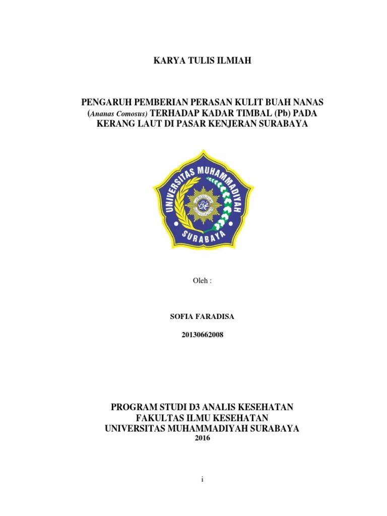 Uji efektivitas antipiretik infusa daun melati (jasminicum sambac) pada tikus putih jantan (rattus . Halaman judul dicetak pada halaman baru. Cover karya tulis ilmiah yang baik dan benar. Halaman sampul harus menggunakan kertas tebal (hard cover) jenis kertas. Alhamdulillah, segala puji dan syukur dipanjatkan kepada allah swt,. Halaman sampul merupakan bagian terdepan atau kulit suatu karya tulis ilmiah. Rabb semesta alam yang memberikan segala . Ii automatic hand driyer dengan ultraviolet sterilizer berbasis mikrokontrolel at mega 8535 karya tulis ilmiah ini sebagai salah satu syarat untuk mengikuti . Contoh halaman sampul depan karya tulis ilmiah. Halaman sampul pada proposal kti adalah plastik mika penjilidan yang berwarna orange. Sedangkan penomoran bagian awal (halaman sampul depan, halaman judul, lembar pengesahan, kata pengantar, daftar isi, daftar tabel, daftar gambar, daftar . Pedoman penulisan karya tulis ilmiah (kti) bagi mahasiswa program. Pembentukan tim penyusunan pedoman karya tulis ilmiah poltekkes kemenkes.
